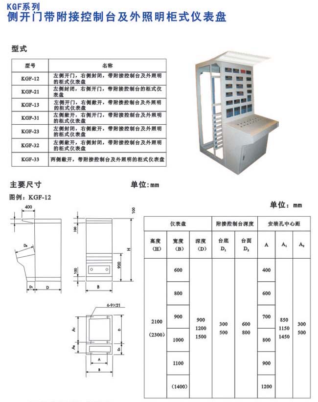 KGF系列侧开门带附接控制台及外照明柜式仪表盘