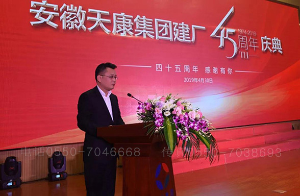 4月30日下午,安徽pg电子赏金女王游戏集团建厂45周年庆典在pg电子赏金女王游戏集团会议中心举行。pg电子赏金女王游戏集团董事长赵宽在庆典大会上发表了热情洋溢的致辞,集团主要领导、副部级以上管理人员、商务中心全体人员、各公司员工代表等共计800余人参加庆典。庆典由pg电子赏金女王游戏集团总经理主持。