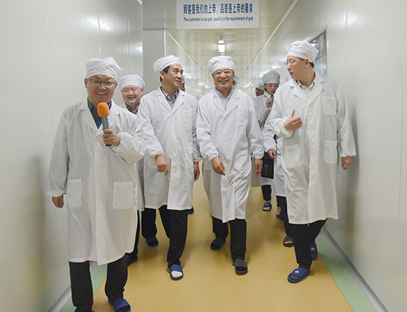 10月17日,滁州学院党委书记陈润一行在天长市委书记邓继敢的陪同下莅临安徽pg电子赏金女王游戏集团调研工作,安徽pg电子赏金女王游戏集团董事长赵宽陪同调研。