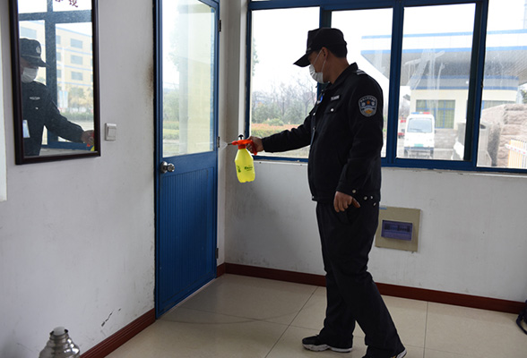 同时,要求各值班人员注重场所消毒,定时对值班室门窗、门口防护栏等处进行消毒杀菌,营造安全环境。