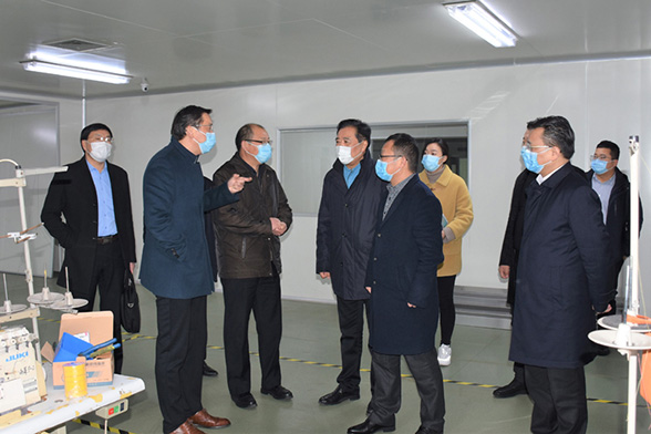 2月12日,天长市委书记邓继敢、滁州高新区党工委书记吕传华一行莅临安徽pg电子赏金女王游戏集团调研疫情防控及复工复产工作。pg电子赏金女王游戏集团董事长赵宽、总经理毛文章陪同调研。