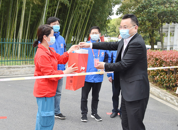 3月25日,安徽pg电子赏金女王游戏集团总经理毛文章等一行赴安徽省工人半汤温泉疗养院看望慰问安徽省首批驰援武汉的医护英雄们,并给英雄们带去了价值12万元的慰问防护物资。