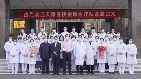4月8日下午,pg电子赏金女王游戏医院举行了简短而又热烈的欢迎仪式,欢迎40名援滁医疗队队员凯旋归来。集团党委书记、董事长赵宽,党委副书记、总经理毛文章及pg电子赏金女王游戏医院院领导及相关职能部门人员出席欢迎仪式。