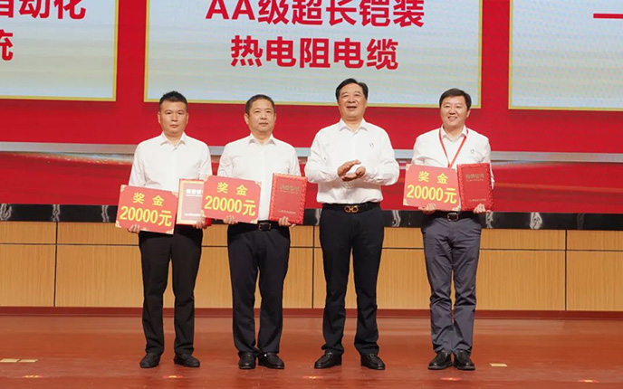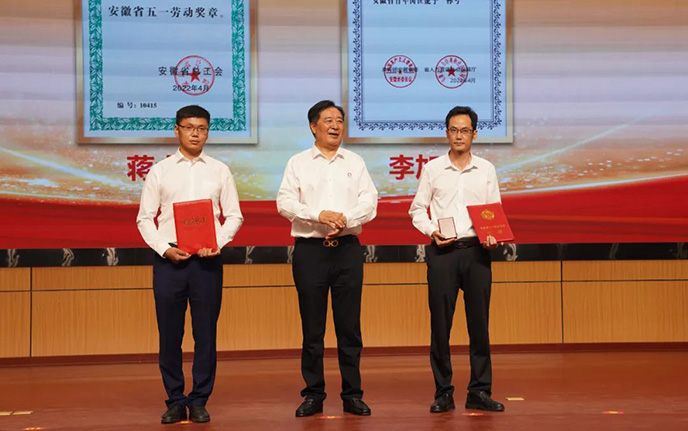 会议为获得2021年度“安徽省五一劳动奖章”和 “安徽省青年岗位能手”的光电缆制造部的蒋士虎、李加龙两位员工颁发了证书;并为2021年度集团先进科技工作者、优秀工匠、全国劳模创研中心获奖项目及在疫情防控工作中表现突出的先进集体、先进个人与优秀志愿者,以及第三批“百人培育计划”入选人员颁发了奖品和证书。